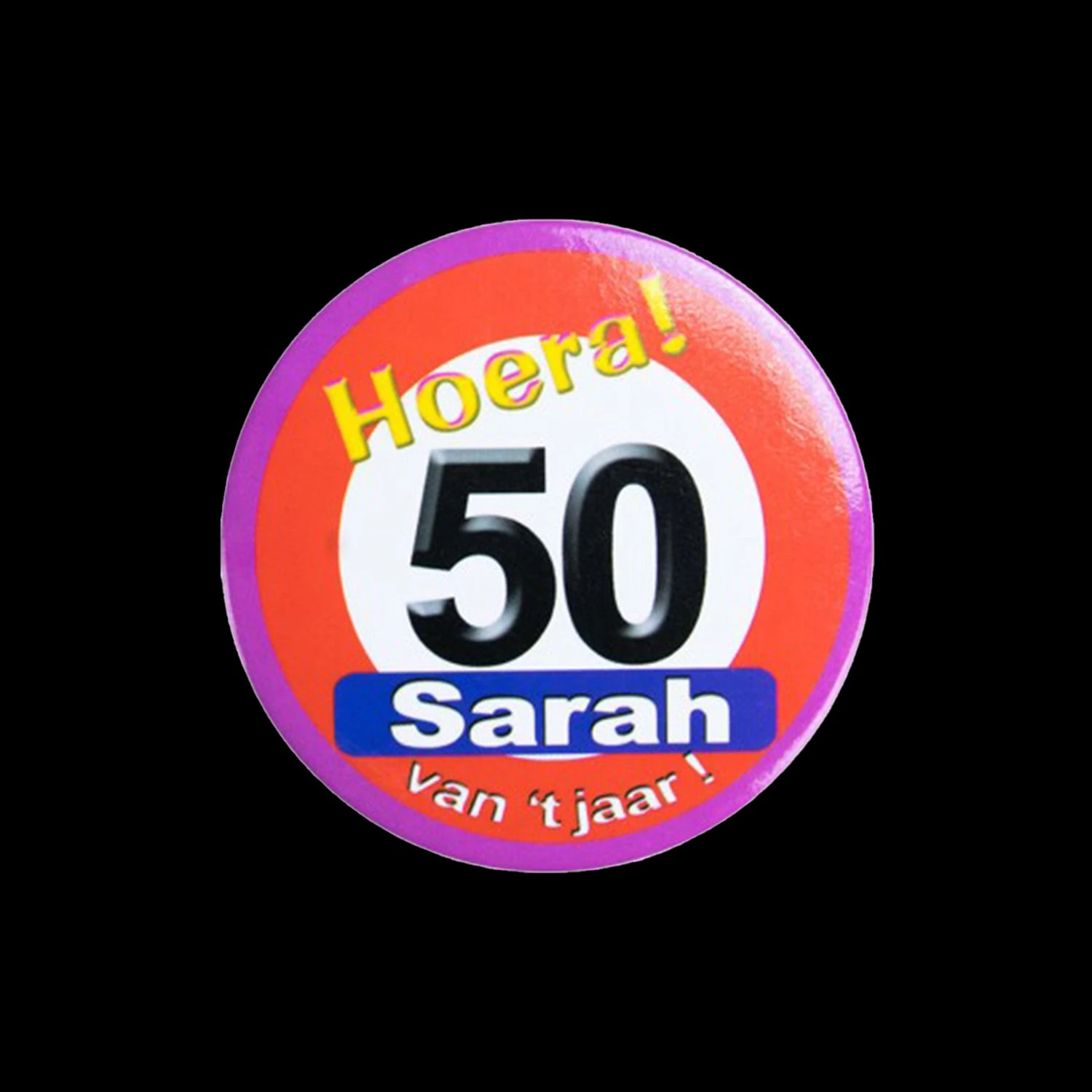 Button Verkeersbord Sarah – Hoera 50