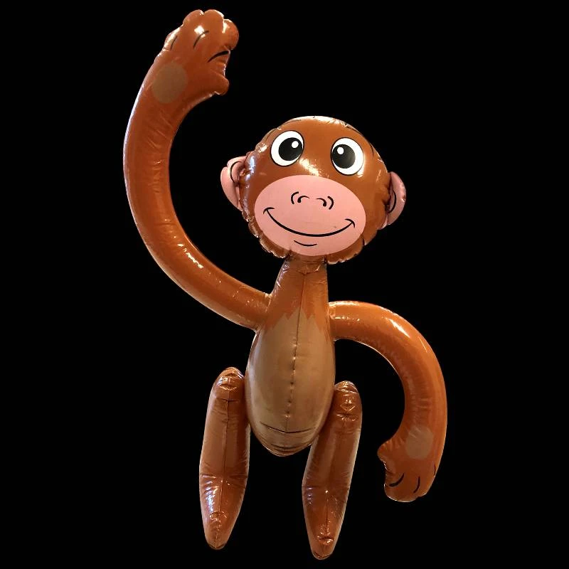 Verstop de bananen want deze opblaas apen komen eraan! Toevallig een jungle feestje en zoek je nog naar de ideale aankleding? Dan mag je stoppen met zoeken, want deze opblaas aap steelt de show. Doordat de opblaas aap op vele manieren gebruikt kan worden, maakt dit een gemakkelijke party toevoeging. Je kan de opblaas aap bijvoorbeeld op verschillende plekken neer zetten als decoratie of ergens ophangen door middel van zijn haak wormige armen. Ook kan deze aap gezellig mee in het publiek meedoen door middel van een crowdsurf!